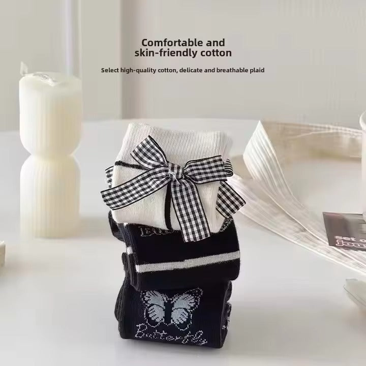 Girls' Cute Calf Socks – Long Tube (3-12 Years, Butterfly & Bow)
